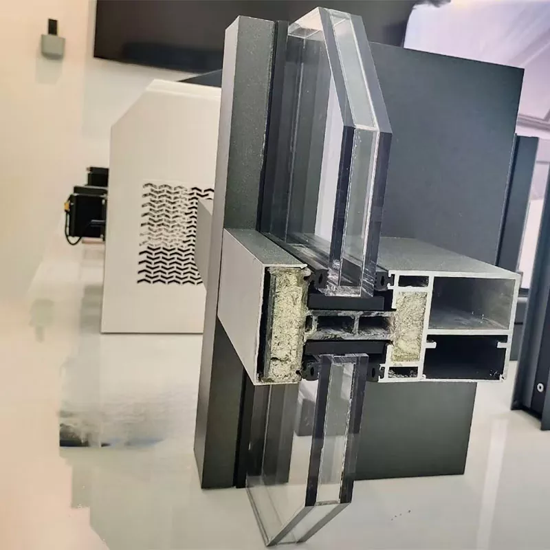 Overordnet design af gardinvægsystem: Vores fluorcarbonsprayisoleringsgardinvægsprofil har et rimeligt gitterdesign og forseglingsbehandling, som kan forbedre gardinvæggens termiske isolering.